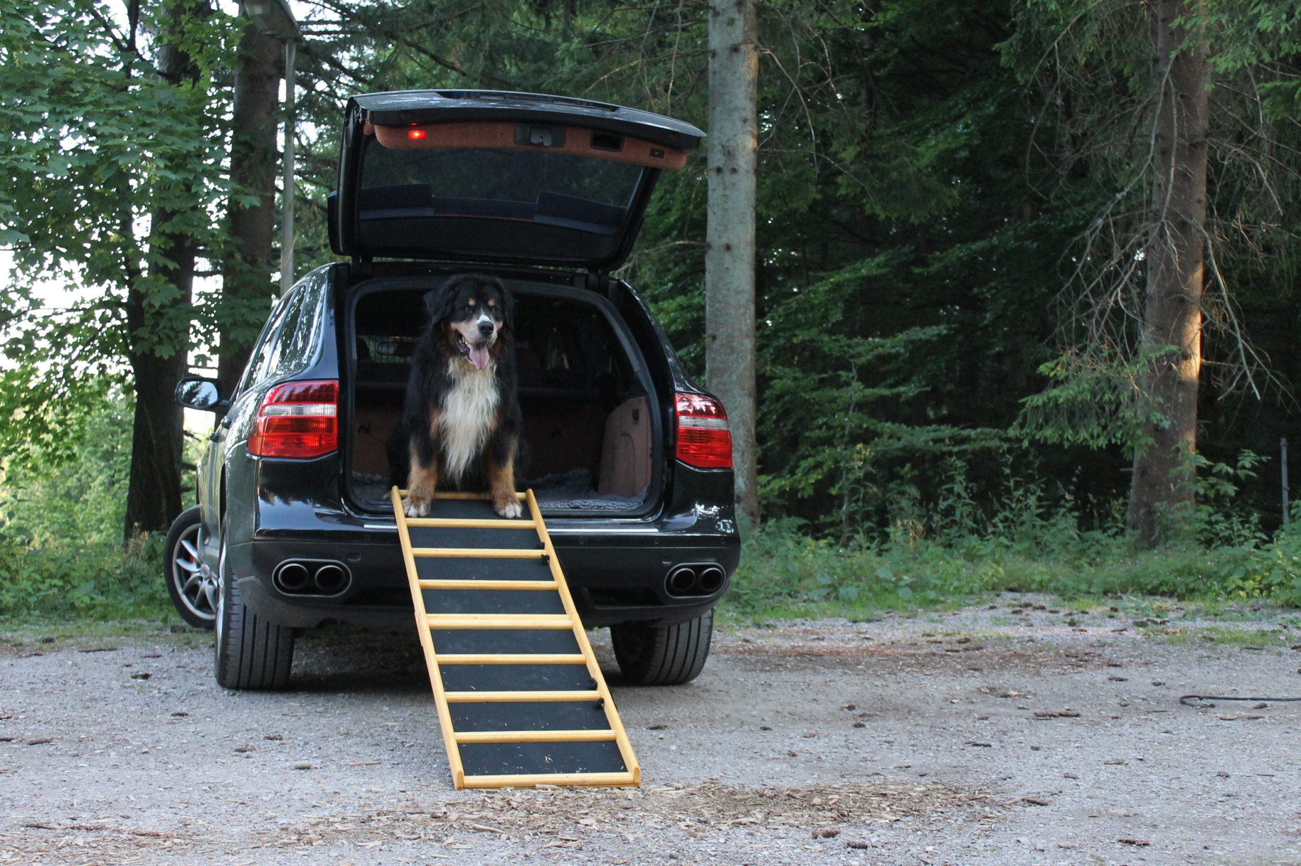 Gerade große, schwere Hunde die schon etwas älter und unsicher sind, Hunde nach Gelenk-OP`s die noch nie über eine Rampe ins Auto eingestiegen sind, akzeptieren diese breite Rampe problemlos.