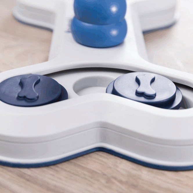 • Brettspiel mit 2 Kegeln sowie Vertiefungen und Schiebedeckeln